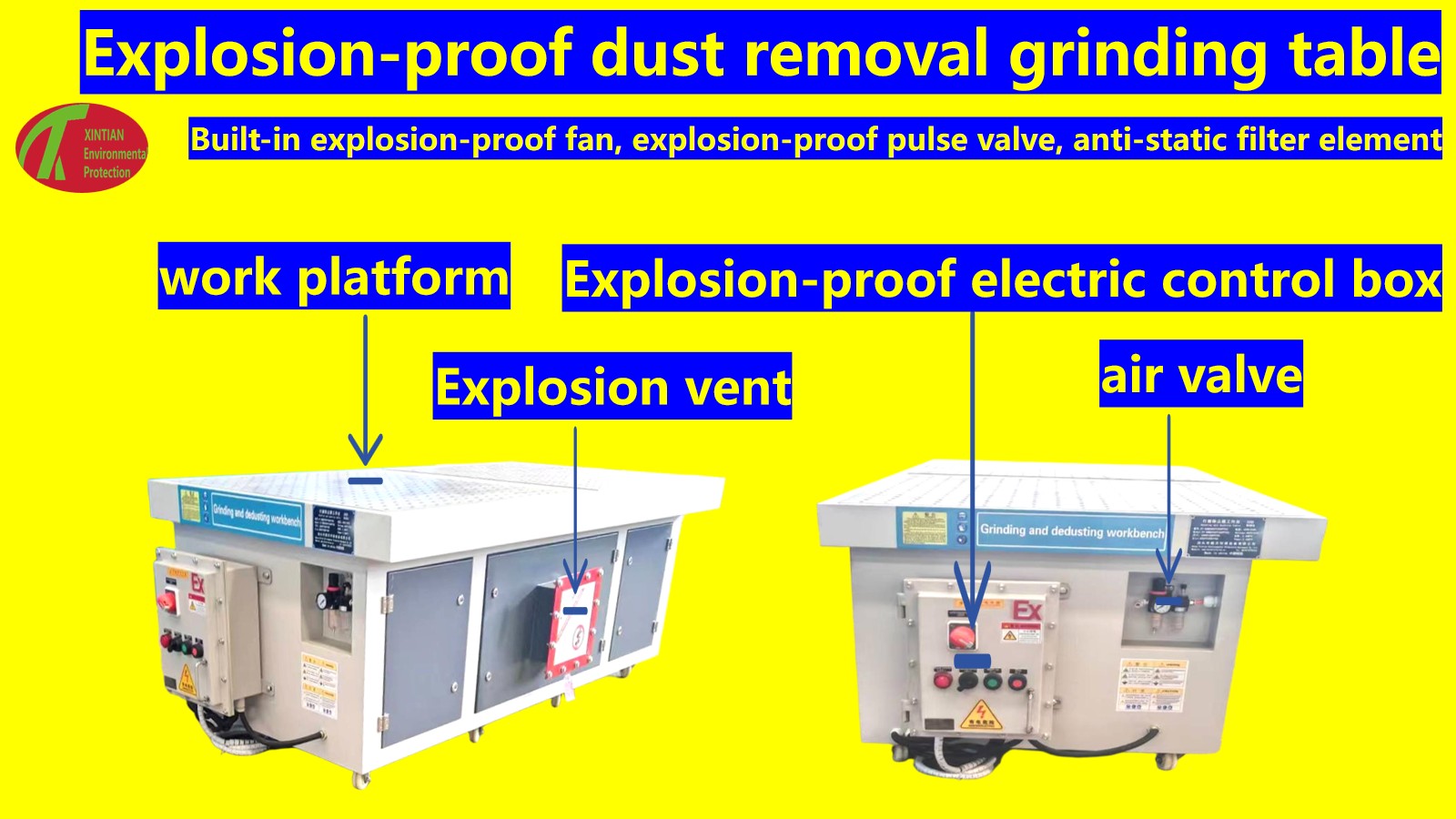 Botou Xintian Environmental Protection Equipment Co., Ltd. is a Chinese company that integrates manufacturers and sellers. The Flat Vacuum sanding table we produce is a device that integrates grinding and vacuuming functions. It is used to timely remove dust and debris generated when grinding flat workpieces to keep the working environment clean, protect the health of operators, and improve grinding efficiency.